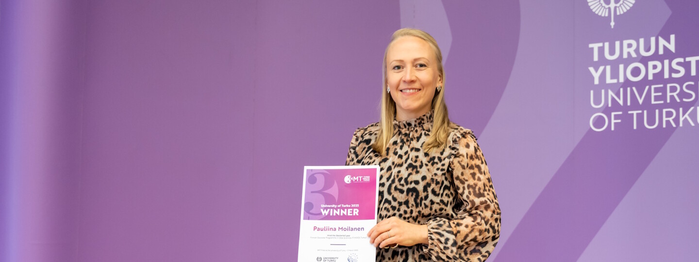 Hammaslääketieteen laitoksen ja kansallisen suun terveystieteiden tohtoriohjelman väitöskirjatutkija Pauliina Moilanen voitti Turun yliopiston Three Minute Thesis -kilpailun. Moilanen edustaa Turun yliopistoa Coimbra-ryhmän kansainvälisessä eurooppalaisille yliopistoille järjestetyssä 3MT-kilpailussa.