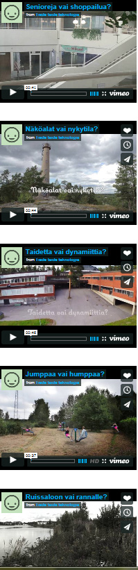 Ensimmäisten kommenttien perusteella valittiin kaksi jatkoon päässyttä ehdotusta. Avuksi otettiin taiteen keinot, ja nyt videot esittelevät kaksi erilaista vaihtoehtoa.