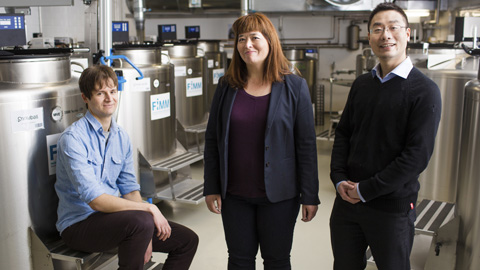 Erikoistutkija Samu Kurki (vas.) ja iCombine-tiimin johtaja ja erikoistutkija Jing Tang (oik.) sekä Caroline Heckman (kesk.) lähtivät mukaan Helsinki Challengeen idealla, joka kehittää yksilöllistä syöpähoitoa.