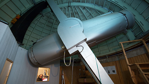 Schmidt-kaukoputki on Harry Lehdon suosikki, koska se on aina käden ulottuvilla. Havaitsija istuu usein koko yön havaintokopissa ja tarkkailee avaruutta tietokoneen ruudulta.