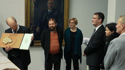 Tuomiojan juhlapuhe oli kuin jatkoa professori Vesa Vareksen (kuvassa vas.) luonnehdinnalle viisikymppisen oppiaineen luonteesta yhteiskuntatieteellisen ja humanististen tieteiden rajapinnassa.
