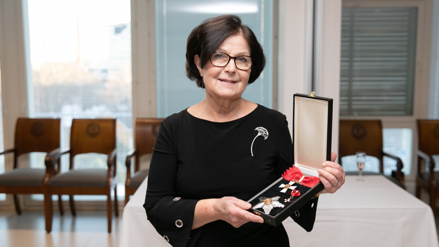 Tieteen akateemikko, suomen kielen professori emerita Kaisa Häkkinen sai Suomen Leijonan ritarikunnan I luokan komentajamerkin. Merkki on hyvin arvokas valtiollinen tunnustus isänmaan palveluksessa tehdystä työstä.