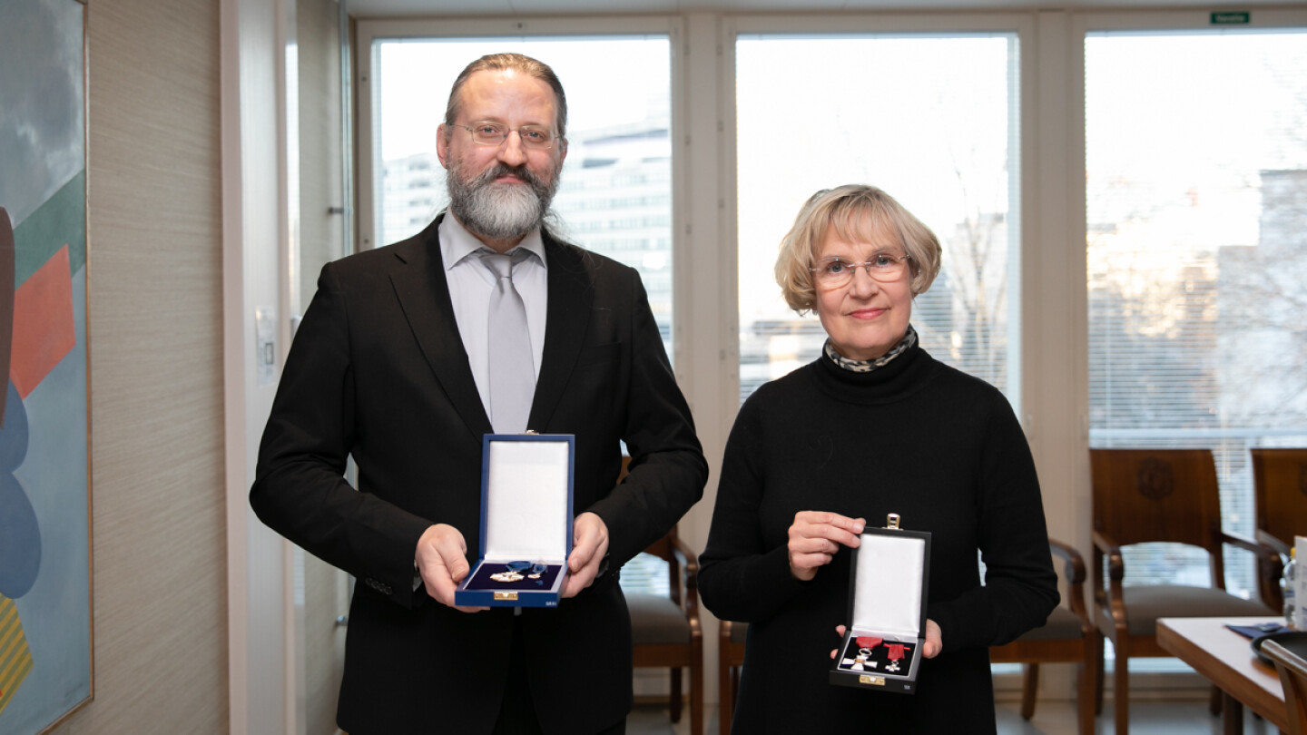 Turun yliopiston henkilöstölle jaettiin Suomen Valkoisen Ruusun ja Suomen Leijonan ritarikuntien arvokkaat kunniamerkit 6.2.2023.