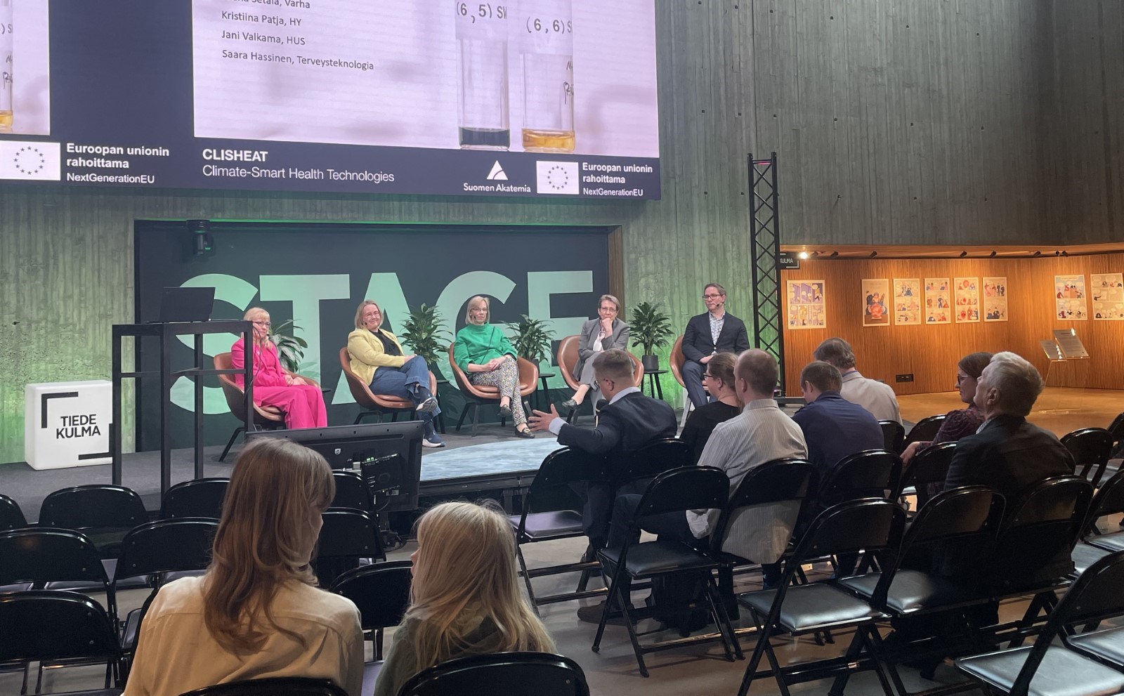 CLISHEAT-hanke järjesti keskustelutilaisuuden terveydenhuollon kestävyydestä Tiedekulmassa Helsingissä torstaina 15.5.2025.