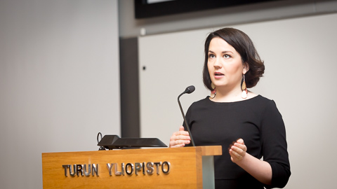 Yliopistot ja ammattikorkeakoulut tuottavat erilaista opetusta, mutta erilaisuus ei ole Sanni Grahn-Laasosen mukaan este yhteistyölle. Opetusministeri puhui korkeakoulujen ja tiedelaitosten johdon seminaarissa 8.12.2016 Turun yliopistolla.