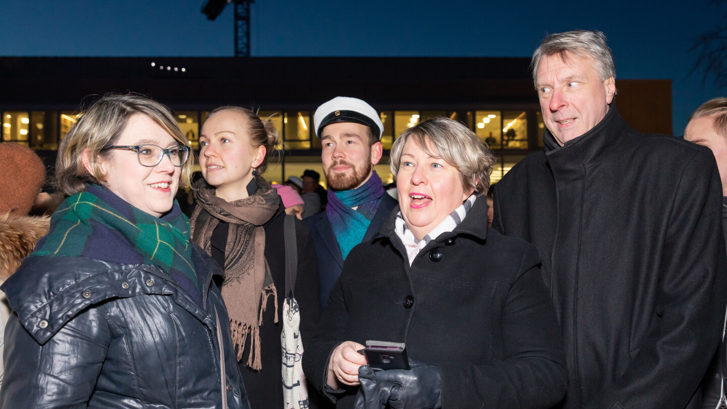 Ulkoilmasynttärit käynnistyivät Turun Akatemianaukiolta, jossa satavuotisjuhlavuoden ohjelmasuunnittelun ohjausryhmän puheenjohtaja Riitta Pyykkö avasi juhlan.