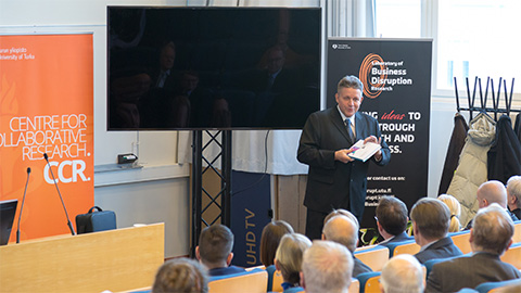 Yksi kirjan toimittajista, tietojärjestelmätieteen professori Mikko Ruohonen (Tampereen yliopisto) kirjan julkistustilaisuudessa Turun kauppakorkeakoululla 17.1.2018.