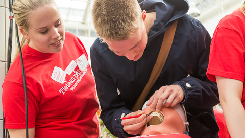 Sakari Hirvonen kokeili, miltä tuntuu poistaa hammaskiveä. – Tämä olisi varmasti paljon vaikeampaa, jos kyseessä olisi oikea potilas. On kiva, kun täällä pääsee näkemään ja kokeilemaan asioita itse. Ja opastus oli tässä pisteessä erittäin hyvää, Hirvonen totesi.