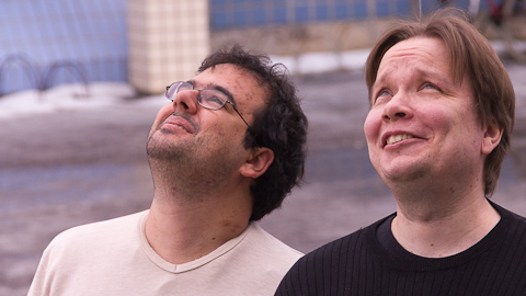 Lucas Rodrigues (vas.) ja Mika Lastusaari ovat vakuuttuneita, että auringosta voi saada nykyistä enemmän energiaa hyötykäyttöön.