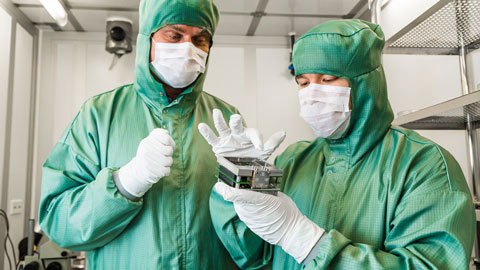 Hannu-Pekka Hedman (vas.) ja Arttu Punkkinen olivat luomassa säteilymonitoria, joka lähetetään vuoden lopulla avaruuteen. Käytännön oloissa testaaminen todentaa laitteen toimivuuden..