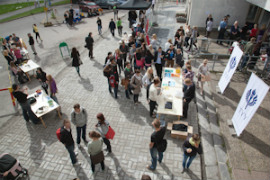 Ylioppilastalon edessä parveili opiskelijoita tutkimassa näytteilleasettajien tarjontaa. Tarjolla oli niin Akateemisen Nintendo Club ry:n pelikokeilumahdollisuutta kuin fantasia- ja scifijärjestöjen yhteistä esittelypistettä.