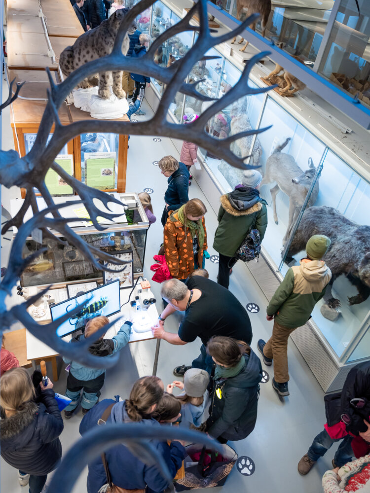 Eläinmuseossa oli koko tapahtuman ajan vilinää, kun ihmiset tutustuivat museon kokoelmiin.