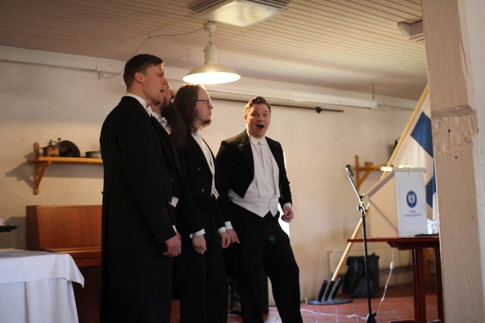 Kosteat Kosijat viihdyttivät juhlayleisöä musiikkiesityksellä.