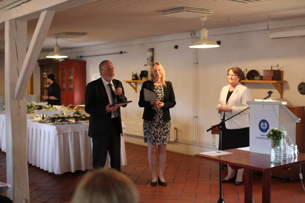 Prix Aboensis -palkinto myönnettiin professori Staffan Normarkille (vas.) ja professori Birgitta Henriques Normarkille. Kuvassa myös Riitta Pyykkö (oik).