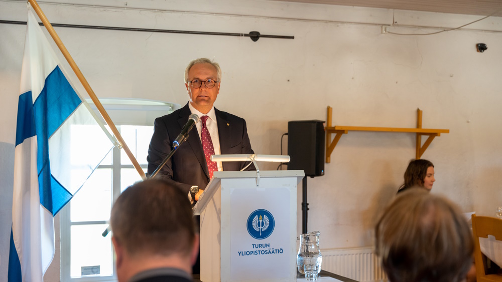 Snellmanin päivän juhlan tervehdyssanat lausui Turun Yliopistosäätiön hallituksen puheenjohtaja Mikko Heinonen.