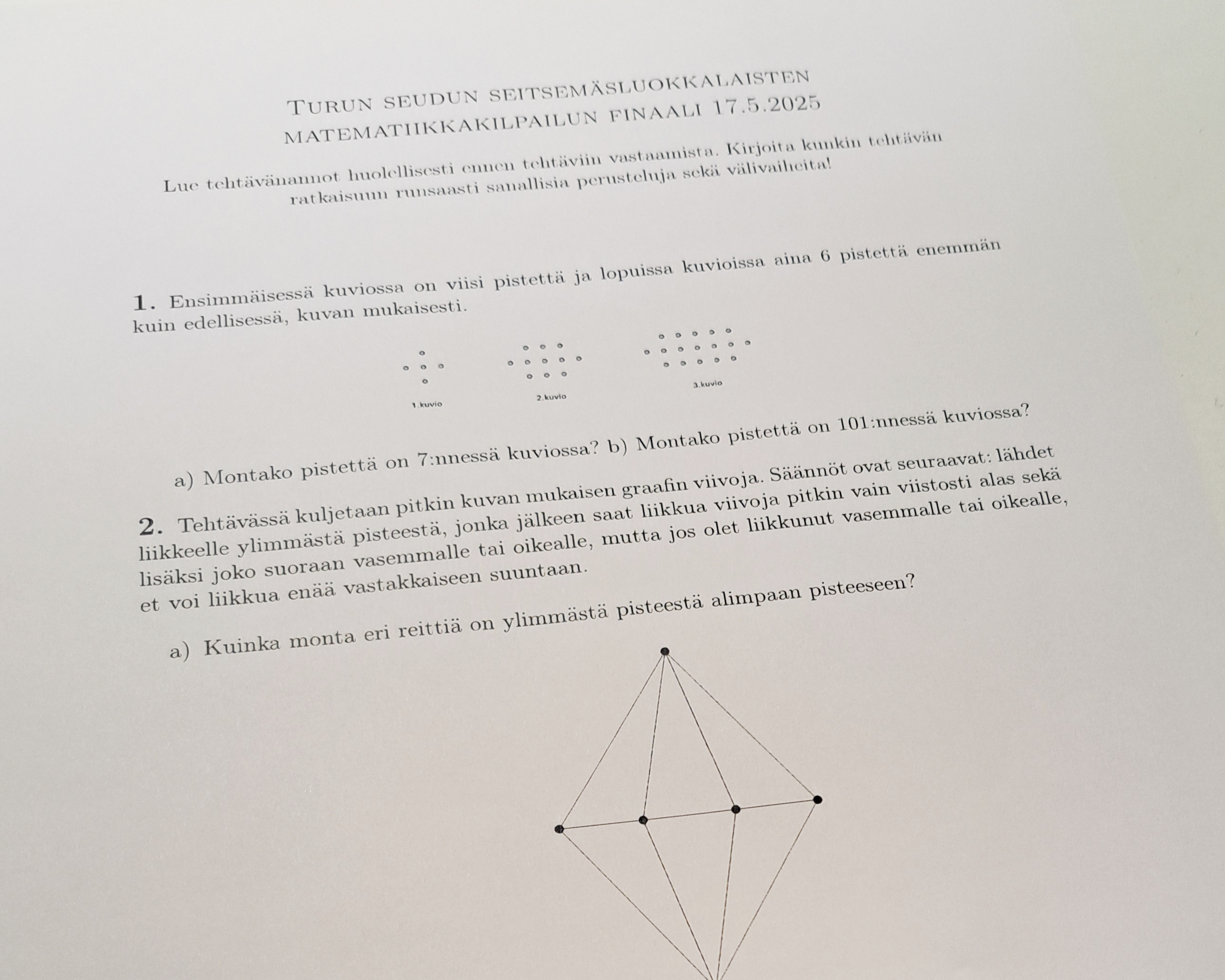 Suomen matemaattisen yhdistyksen ja Turun yliopiston järjestämä 7. ja 8.-luokkalaisten matematiikkakilpailu pidettiin yliopistolla lauantaina 17.5.2025.