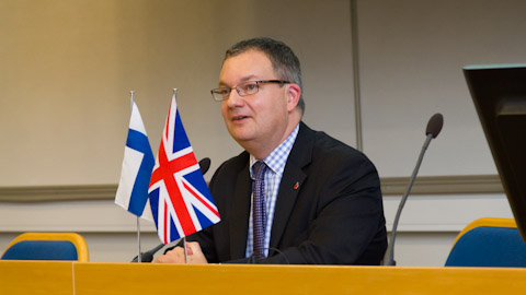 Yhdistyneen Kuningaskunnan Suomen suurlähettiläs Matthew Lodge puhui Euroopan unionin mahdollisuuksista sekä Britannian ja pohjoismaiden eri EU-näkemyksistä yleisölle avoimella Studia Generalia luennolla.