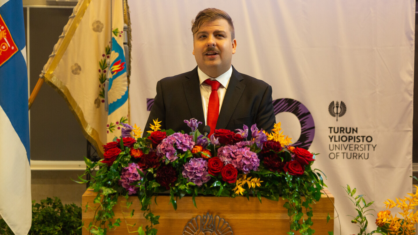 Ympäristöministeriön valtiosihteerinä toimiva Terhi Lehtonen palasi puheessaan omiin opintoihinsa. Vuonna 1991 alkaneet valtio-opin opinnot ovat kuljettaneet tiedekunnan alumnia ulkoasiainhallinnon, kehitysyhteistyön ja Turun Eurooppa-toimiston pystyttämisestä Euroopan parlamentissa ympäristö ja ilmastopolitiikan ja lainsäädännön valmisteluun.