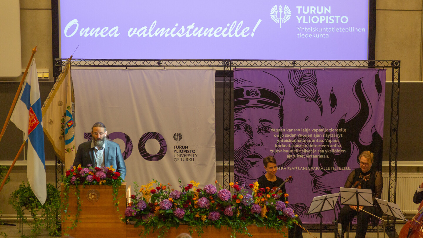 – Se lause kuuluu: ainakin on mielenkiintoinen aika olla yhteiskuntatieteilijä. Kenties suurin ajatuksellinen murros, jonka olen saavuttanut opintojeni aikana, on sen ymmärtäminen, ettei tuo lause oikeasti kysy aikaa eikä paikkaa. Ihminen on ihmiselle jatkuva suuri mysteeri, ja me jotka luemme ihmistieteiksi luettavia tieteenaloja saamme jatkuvasti olla hämmästyneitä itsemme edessä. Tässä ihmisen kyvyssä paeta omaa ymmärrystään ja sen kanssa alati kamppailevassa tarpeessamme härkäpäisesti pyrkiä selittämään ja selventämään asuu suuri kauneus, Huttunen totesi.