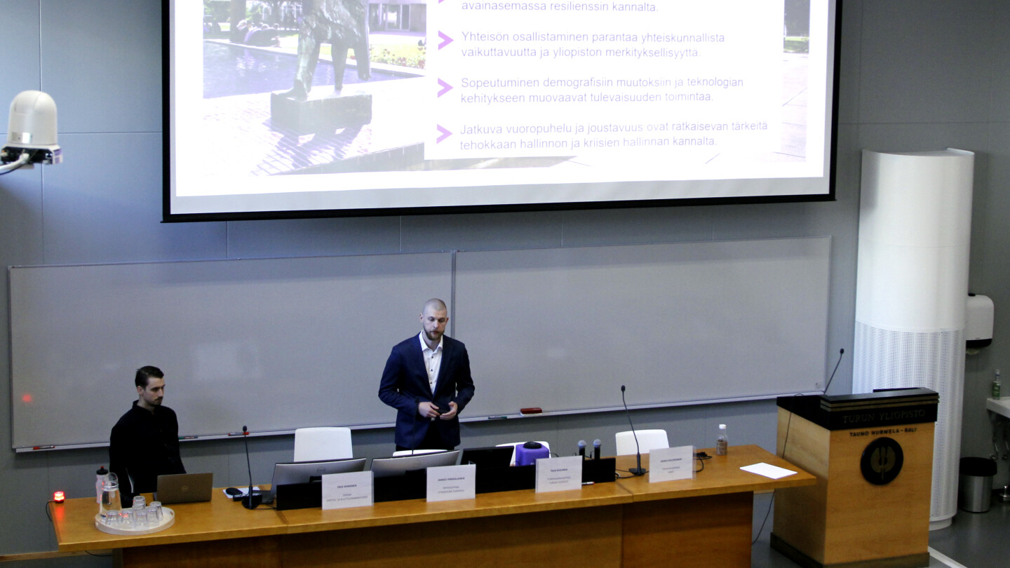 Turun yliopiston erikoistutkija Veli Virmajoki esitteli yleisölle keskeisiä poimintoja yliopiston vastikään julkaistusta Future Directions and Possibilities for the University -raportista. Syväluotaavaan kirjallisuuskatsaukseen ja Delfoi-menetelmällä kerättyyn aineistoon pohjautuvassa raportissa tarkastellaan keskeisimpiä trendejä, muutosvoimia ja kehityssuuntia, jotka muovaavat yliopistojen tulevaisuutta. Raportin tutkimustulokset korostavat muun muassa strategisen ennakoinnin merkitystä tilanteessa, jossa yliopistojen on navigoitava yhä monimutkaisemmassa ja entistä kilpaillummassa globaalissa toimintaympäristössä.