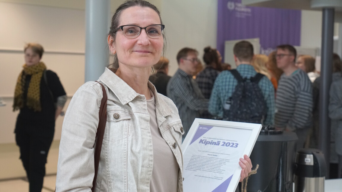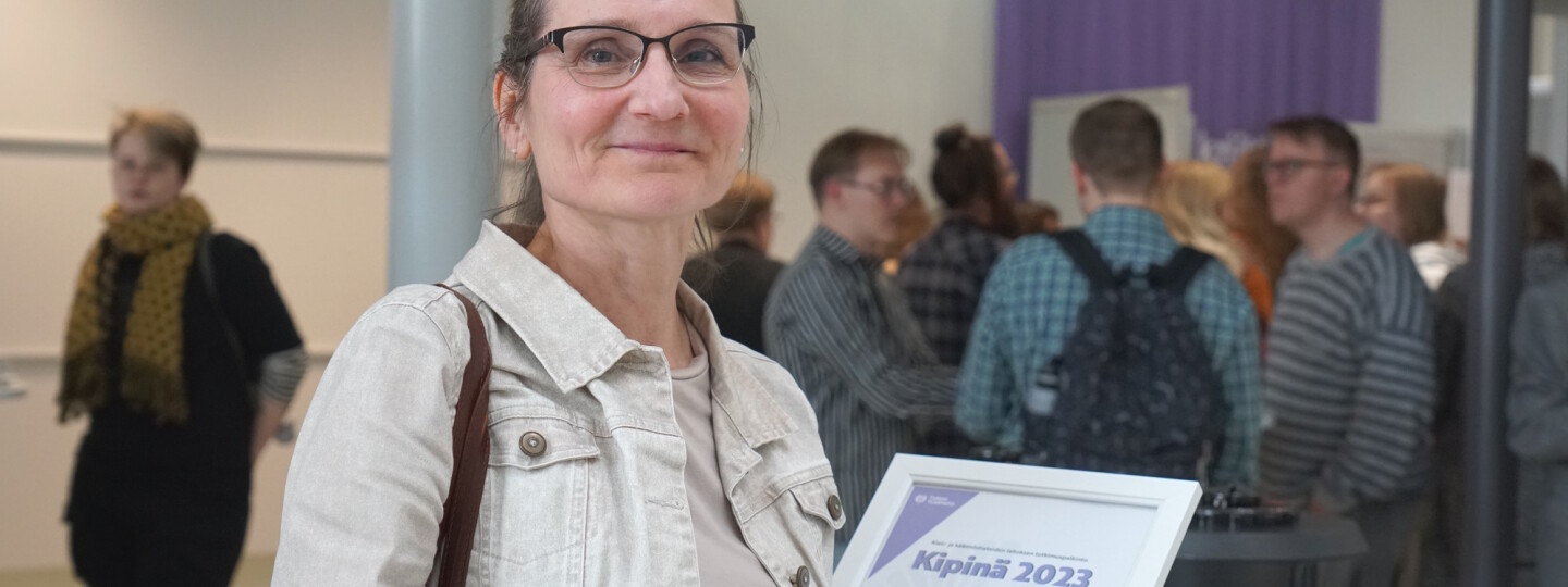 Ranskan kielen yliopistonlehtori Maarit Mutta on saanut kieli- ja käännöstieteiden laitoksen Kipinä-tutkimuspalkinnon. Tunnustuksella halutaan palkita laitoksen erityisen ansioitunut tutkija ja tehdä koko laitoksen tutkimusta näkyväksi. Toista kertaa jaettu Kipinä-palkinto julkistettiin kieli- ja käännöstieteiden laitoksen Tiedepäivässä torstaina 4.5.2023.