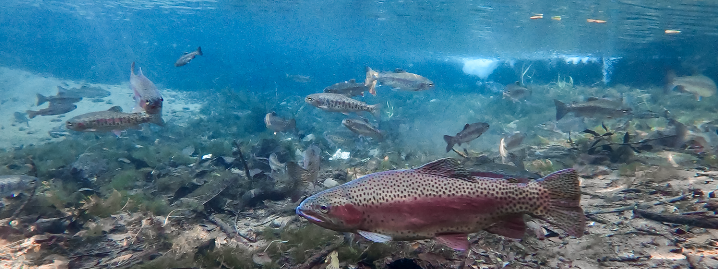 > Kirjolohi uimassa luonnonvesissä. Kuva: Luca Pettinau.