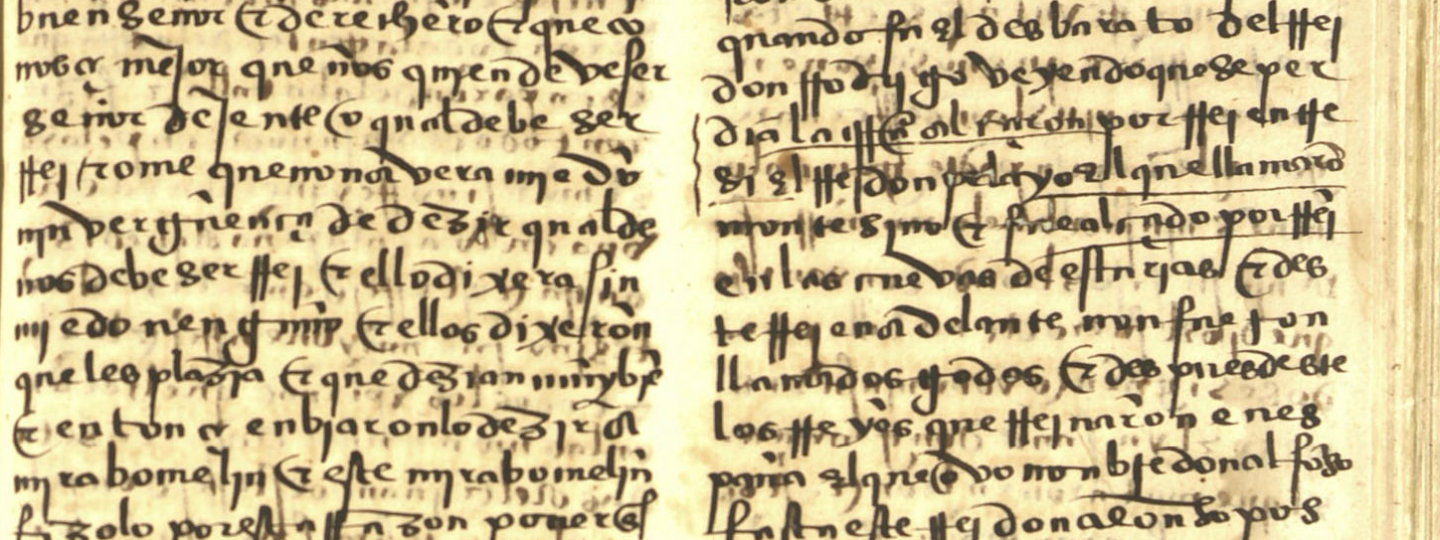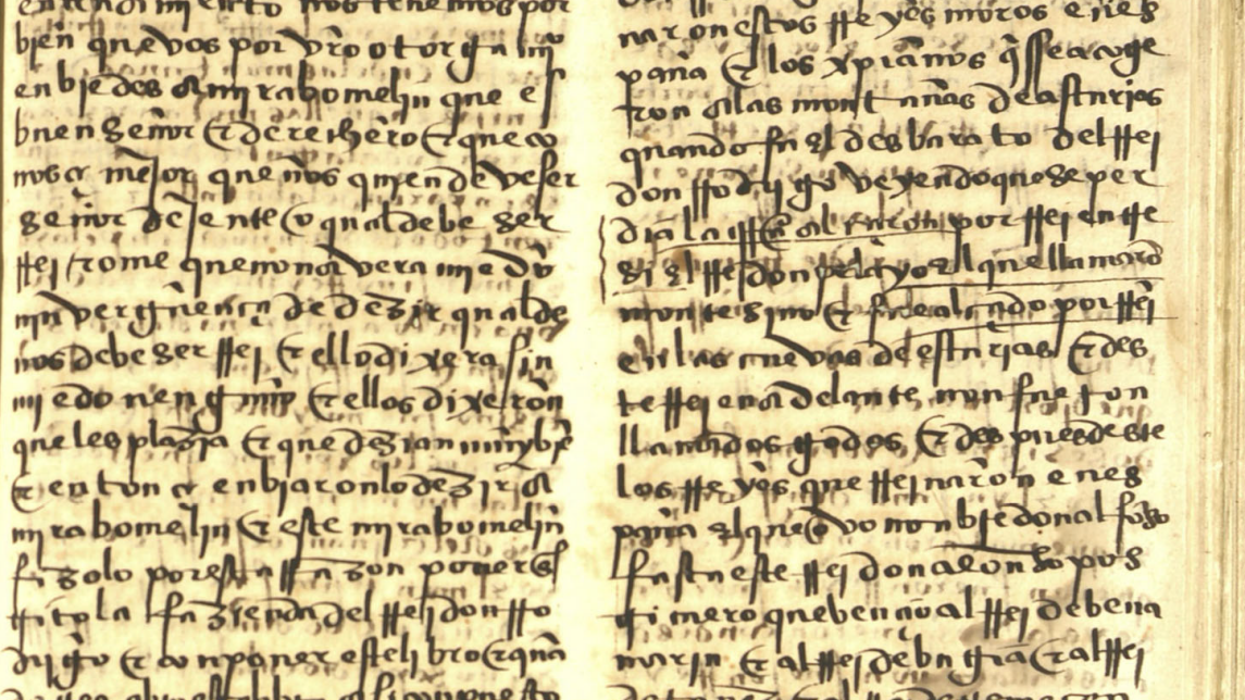 Tiago Queimada e Silva käytti väitöstutkimuksessaan aineistona Portugalin keskiajan aateliston kirjoittamia historiallisia teoksia. Kuva: Crónica de 1344, Biblioteca General Histórica, Universidad de Salamanca, Manuscript 2656.