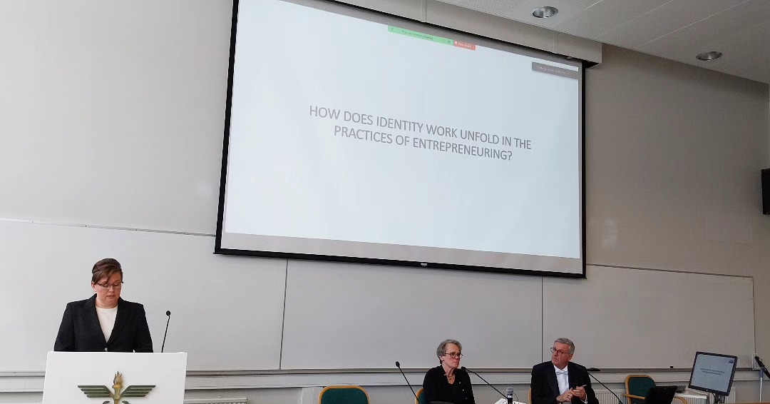 Anna Elkina defended her doctoral dissertation in Entrepreneurship entitled ”Unfolding identity work during an entrepreneurial journey. An autoethnographic study” at the University of Turku on 12.04.2024. Anna’s thesis was supervised by Professor Jarna Heinonen, who acted also as a Custos, and Professor Ulla Hytti. Anna was honoured to have Professor Chris Steyaert (University of St. Gallen, Switzerland) and Professor Kim Poldner (The Hague University of Applied Sciences and University of Groningen, the Netherlands) as the pre-examiners of the thesis. Professor Steyaert acted also as an opponent in the deference.