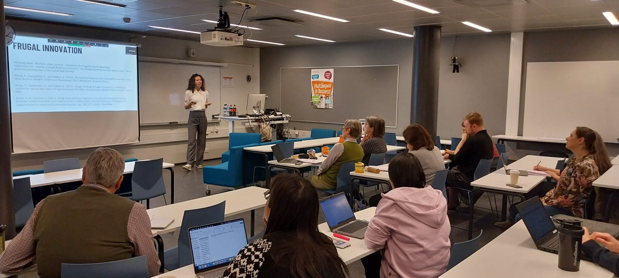 In April, the Entrepreneurship unit hosted a research seminar titled “Queering – and Queries of – Our Thinking About the Futures We Envision.” The event welcomed Professor Chris Steyaert from St. Gallen University (Switzerland) and Professor Kim Poldner from The Hague University of Applied Sciences and the University of Groningen (Netherlands), who presented their insights on entrepreneuring as a focus and queering as a method in entrepreneurship studies.