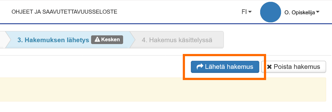 - Järjestelmä pyytää sinua varmistamaan, että haluat lähettää hakemuksen.
