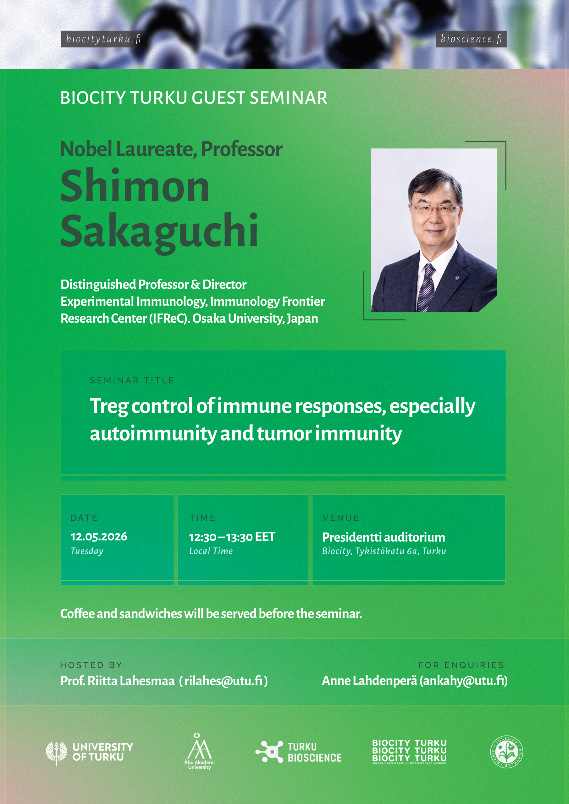 BioCity Turku Guest Seminar: Nobelisti Prof. Shimon Sakaguchi