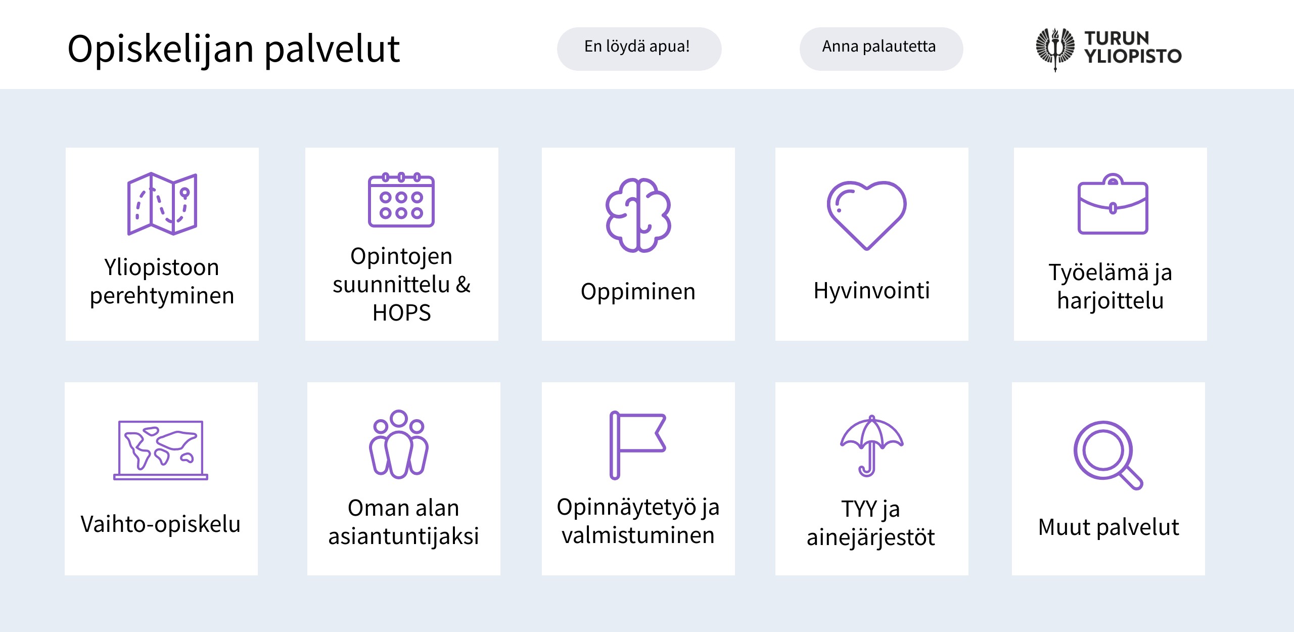 Turun yliopiston intranetistä löydät kaiken oleellisen liittyen opiskelun tukeen ja opiskeluun. Pääset sinne utu-tunnuksellasi. Tänne olemme laittaneet tiedot aiheista, joita saatat tarvita, mikäli sinulla ei ole tällä hetkellä voimassa olevaa utu-tunnusta.