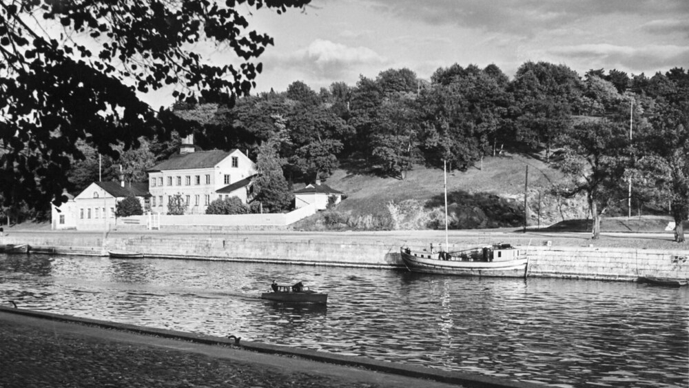 Yliopiston kirjastotalon suunniteltu paikka Aurajoen rannalla. Kuva otettu joen vastarannalta Samppalinnanmäen suuntaan kesällä 1946.