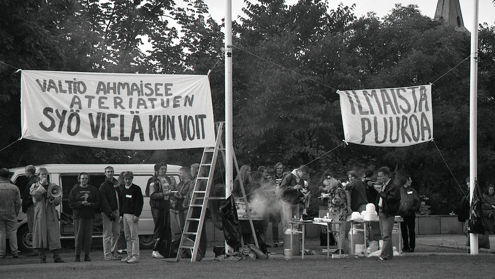 Turun yliopiston ylioppilaskunta jakoi kaurapuuroa Yliopistonmäellä 24.10.1991. Tapahtuma oli kannanotto hallituksen aikomukselle poistaa kokonaan opiskelijoiden ateriatuki valtion budjetista. Kuun alussa Yliopistonmäelle oli kokoontunut 2000 opiskelijan mielenosoitus.