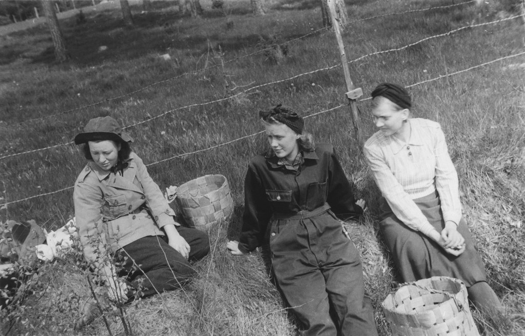 Yliopistolaisia auttamassa pula-ajan perunanistutustalkoissa, Tuorlassa vuonna 1946. Viettämässä levähdystaukoa oikealta observaattori Liisi Oterma, kirjoitusapulainen Hilkka Aaltonen ja neiti Meri Kyrki.