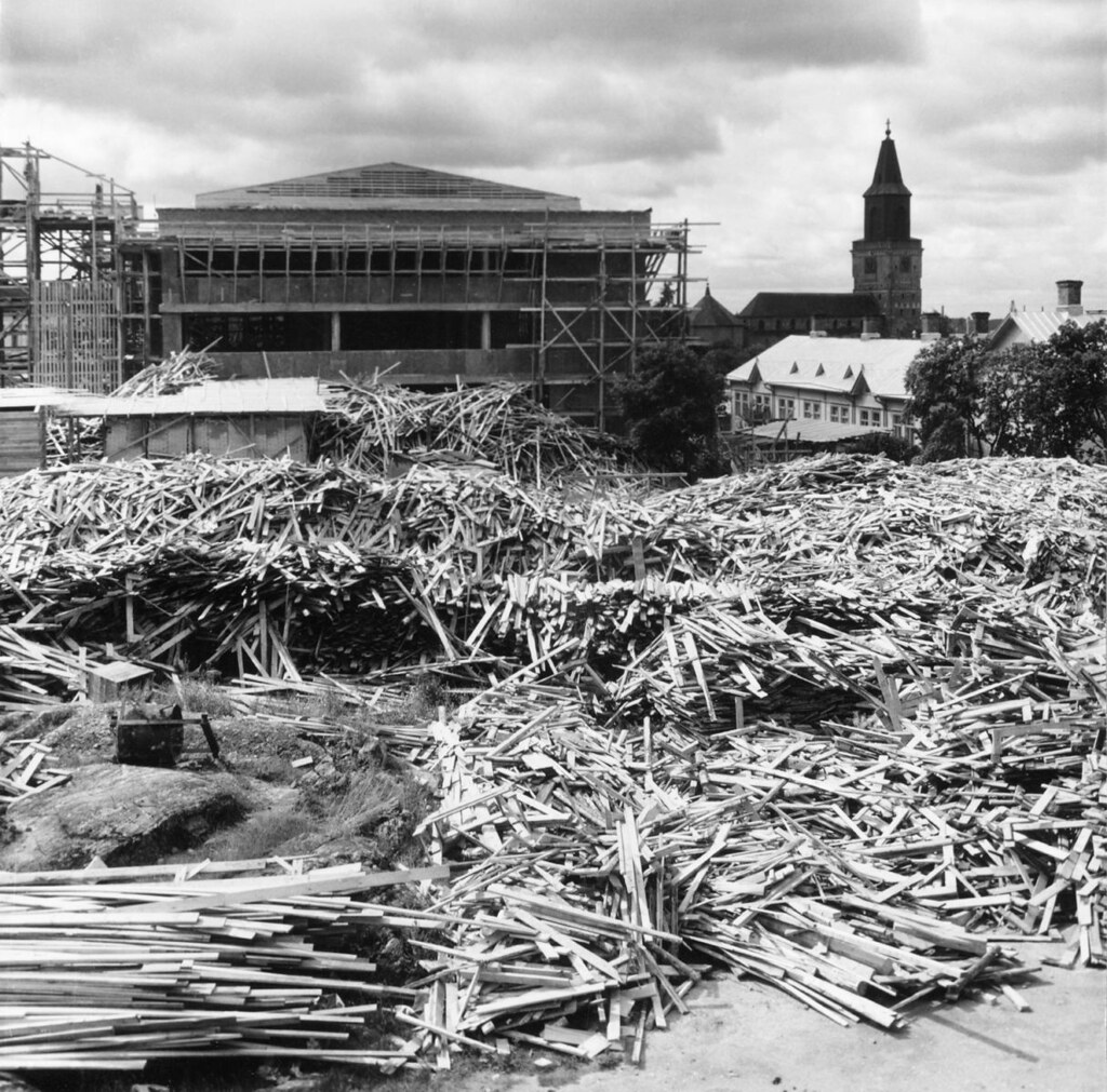 Uuden kirjastotalon rakentamista kesällä 1953 tai -54.