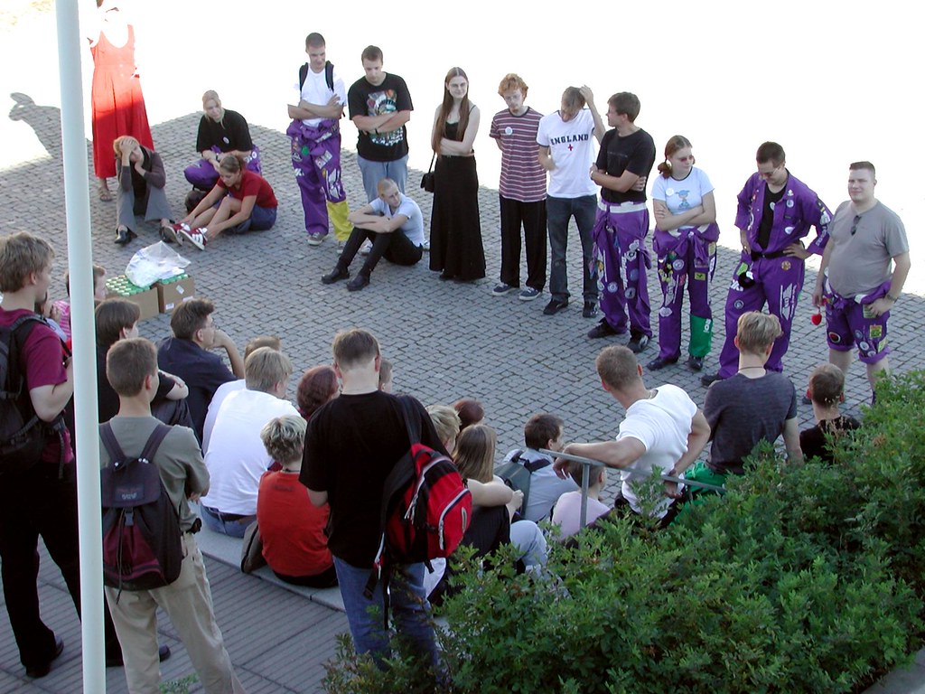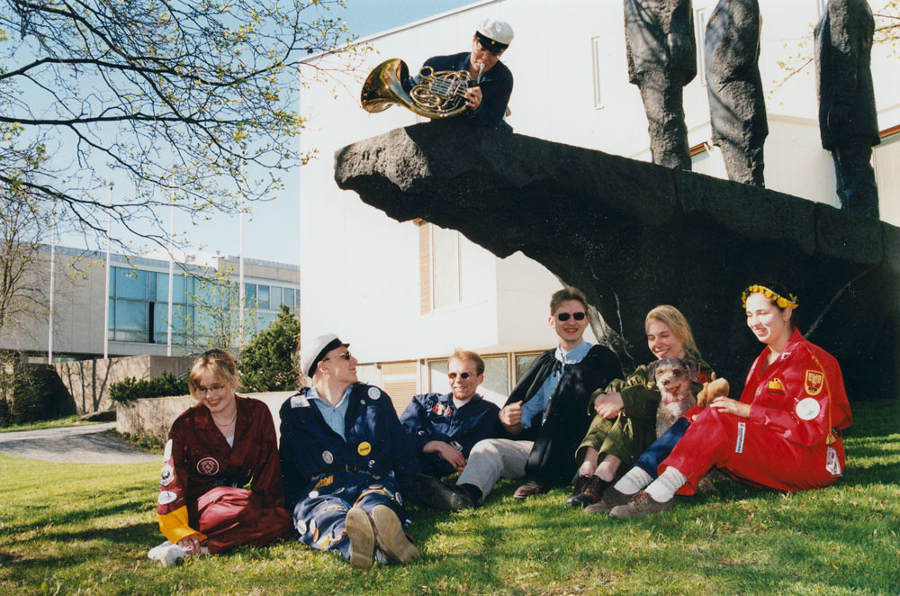 Osakunta-aktiiveja vapunvietossa vuosituhannen vaihteessa.