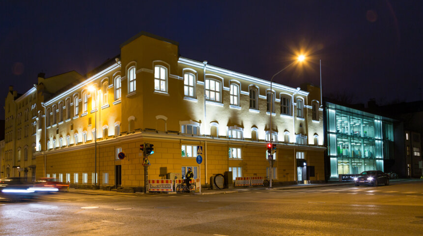 Humanistisen tiedekunnan opiskelijoita Sirkkalan kasarmin Historicum-rakennuksella v. 2016.