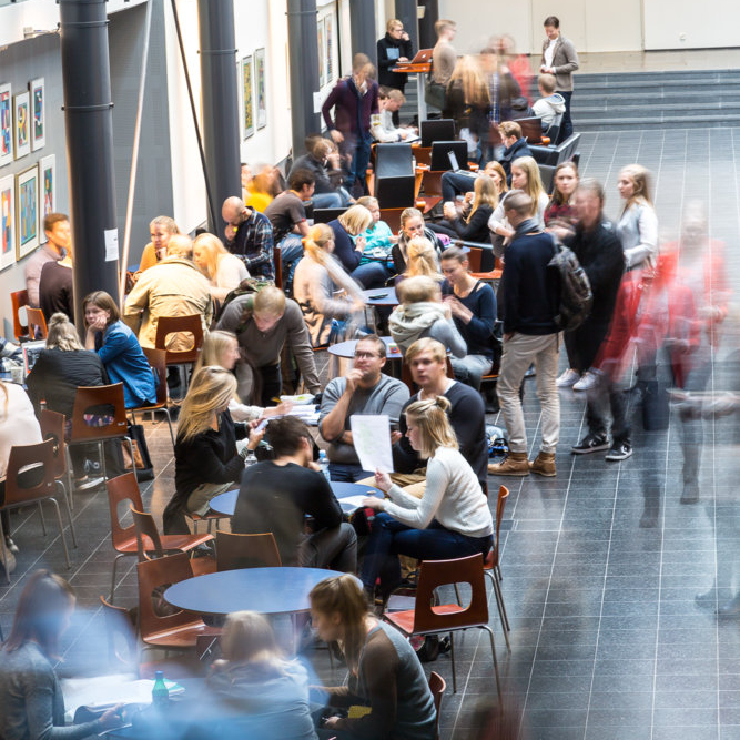 Kauppakorkeakoulun opiskelijoita Mercatorilla v. 2015.