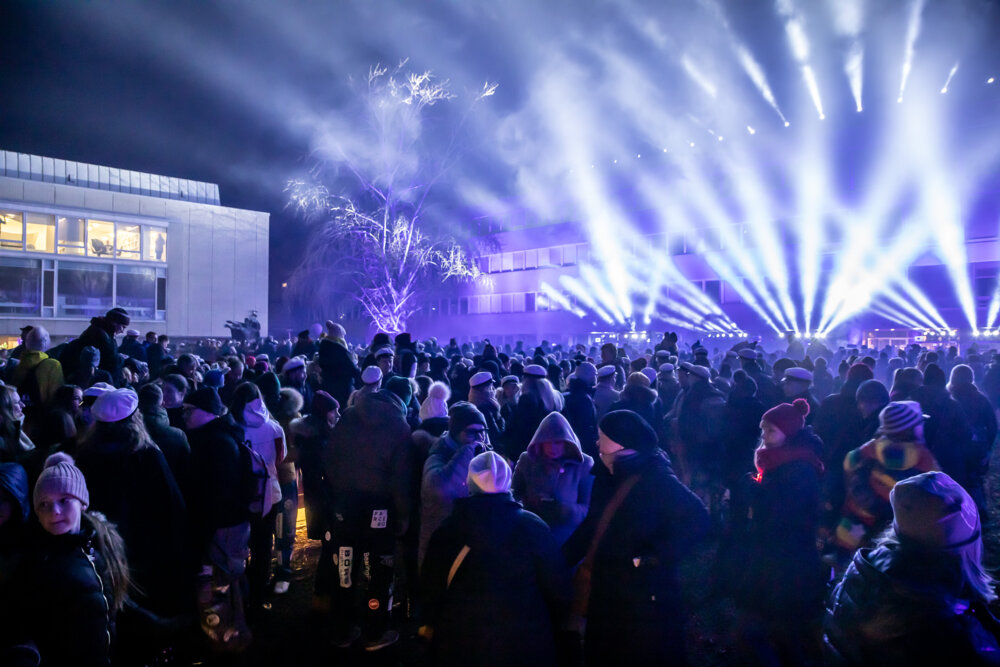 Yliopistonmäen valoshow Turun yliopiston 100-vuotissyntymäpäivillä v. 2020.