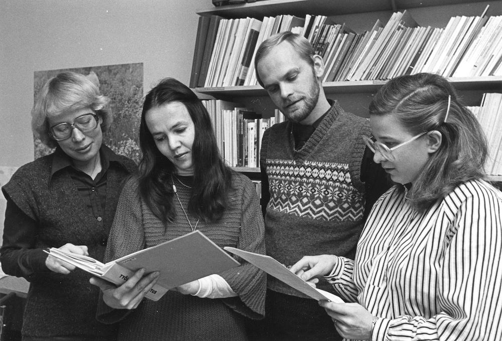 Täydennyskoulutuskeskuksen työvoimakoulutuskurssien henkilökuntaa 1980-luvun alkupuolella.