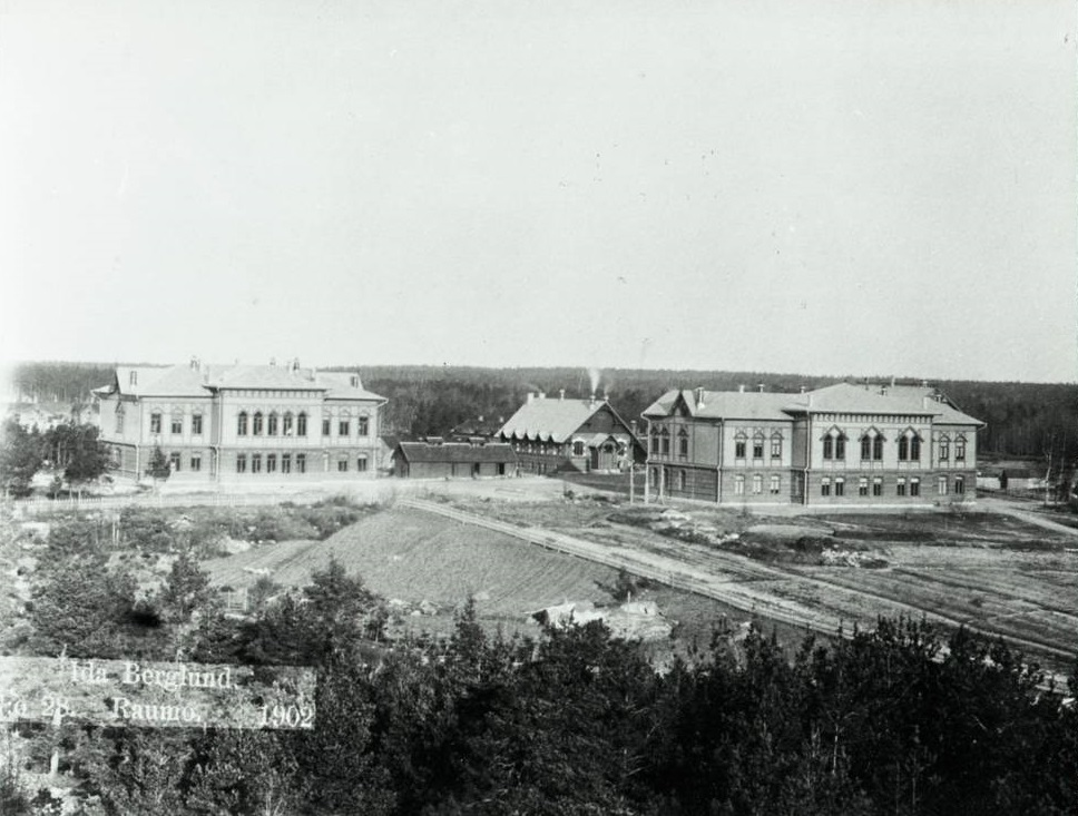 Rauman opettajankoulutuslaitoksen seminaarinmäki vuonna 1902. V. 1898–99 valmistuneiden opettajaseminaarin rakennusten ympäristö pysyi lähes muuttumattomana 50-luvulle asti.