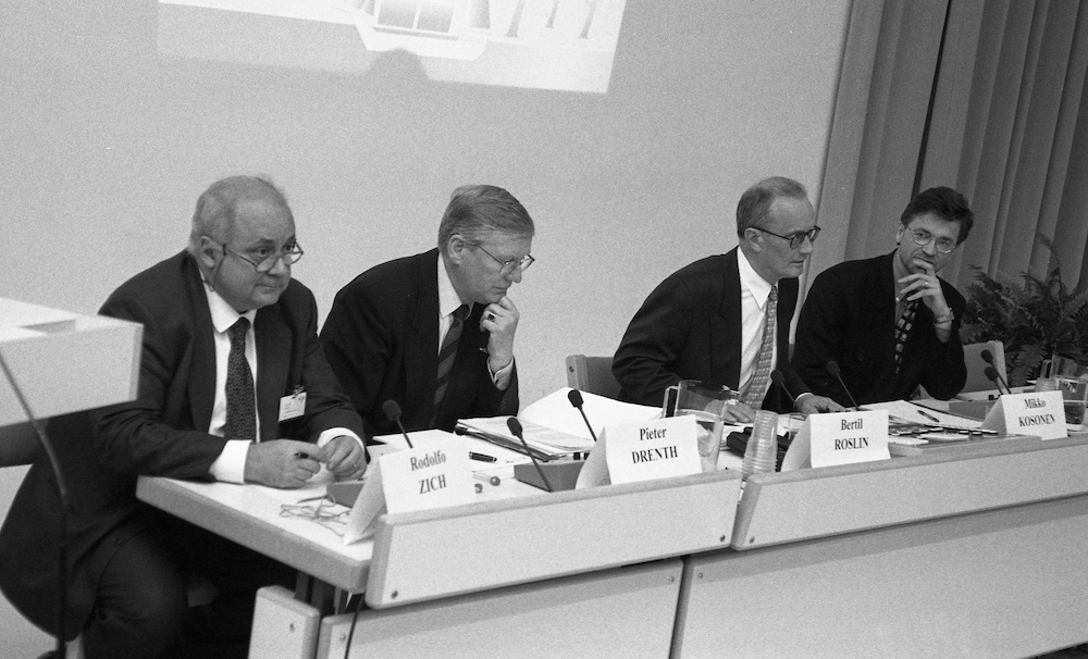 CRE eli eurooppalaisten rehtorien neuvosto piti puolivuotiskongressinsa Turussa 22.5.1997. Vasemmalta oikealle edustajia Torinon yliopiston, Amdsterdamin yliopiston, Åbo Akademin ja Nokian edustajia. Tapaamisessa selvitettiin yliopistojen ja yritysten välisiä innovaatioita.