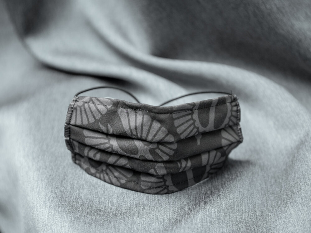Turun yliopiston siipisoihdulla kuvitettu kasvomaski koronavuonna 2020.