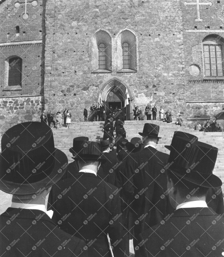 Promootiokulkue astumassa tuomiokirkkoon vuoden 1970 promootiossa.