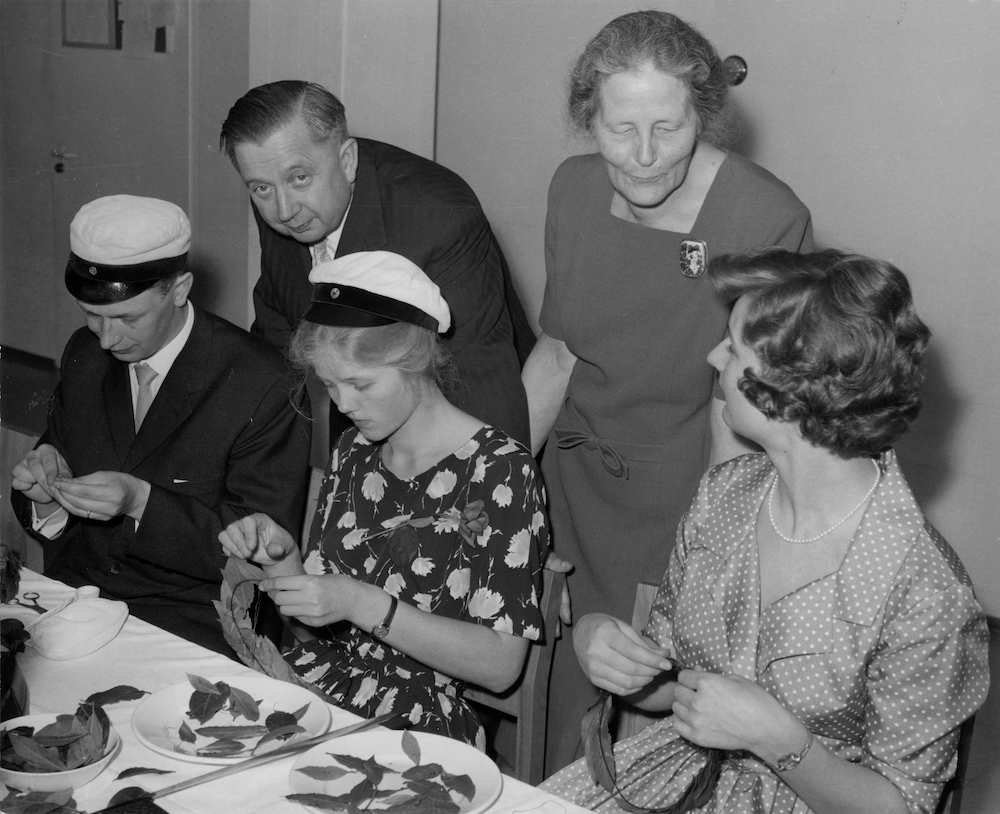 Seppele oli vielä maisteripromootioiden aikaan yksi maisterin symboleista. Tulevat maisterit valmistelivat seppeleensä itse seppeleensitojaisissa ennen promootioaktia. Vuoden 1960 promootio.