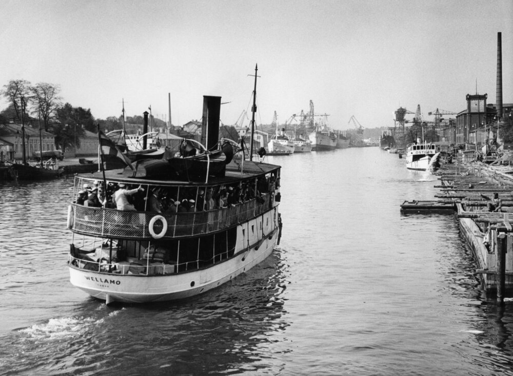 Perinteinen promootiopurjehdus Naantaliin saaristolaiva Wellamolla v. 1960.