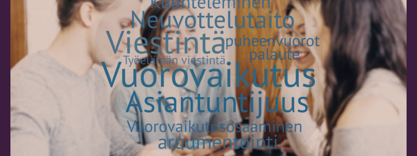 Viestintää ja vuorovaikutusta, puhumista ja kuuntelemista, yhteistyötä ja neuvottelua, vaikuttamista ja argumentointia, akateemisen asiantuntijuuden ja työelämän vuorovaikutusosaamisen kehittämistä. Tätä opiskellaan Asiantuntijan vuorovaikutusosaamisen opintojaksoilla ja Työelämän vuorovaikutuksen opintokokonaisuudessa.