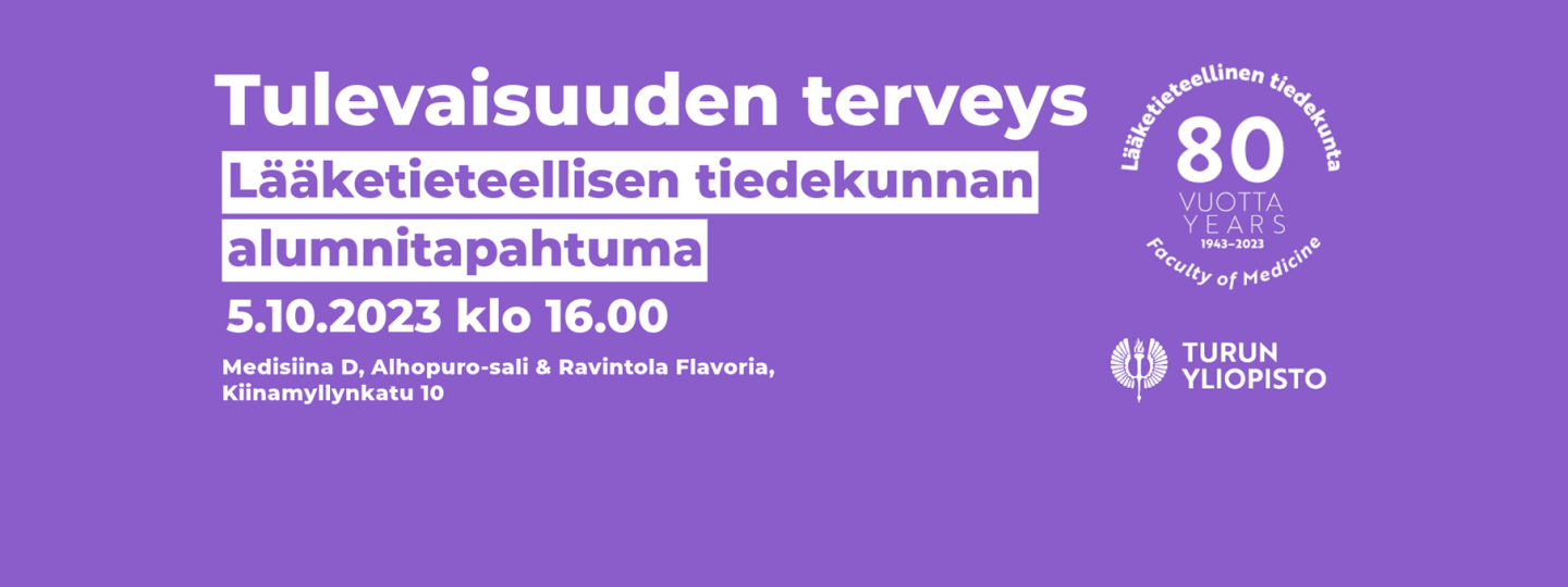 Tervetuloa lääketieteellisen tiedekunnan 80-vuotisjuhlaviikon alumnitapahtumaan Tulevaisuuden terveys 5.10.2023 klo 16 alkaen.