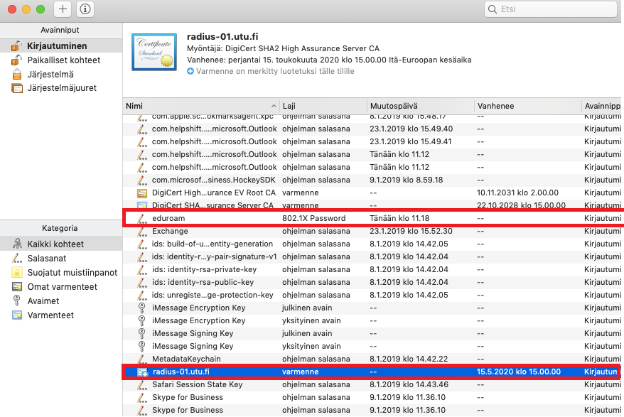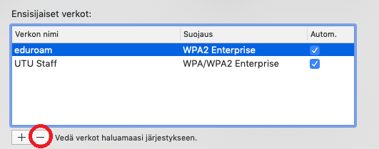 Eduroamin tietoturvallinen käyttö edellyttää, ettet anna tunnustasi ja salasanaasi muille kuin Turun yliopiston palvelimille. Sen voi varmistaa määrittelemällä luottosuhteet Turun yliopistoon ennen Eduroamin käyttämistä.